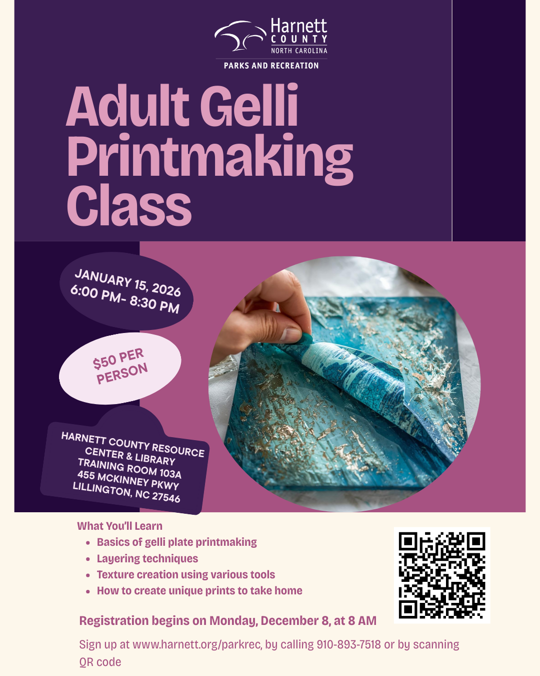 January 2026 Adult Gelli Printmaking Class (registration opens on Mon, Dec 8 at 8 AM) *limited to 6 participants*