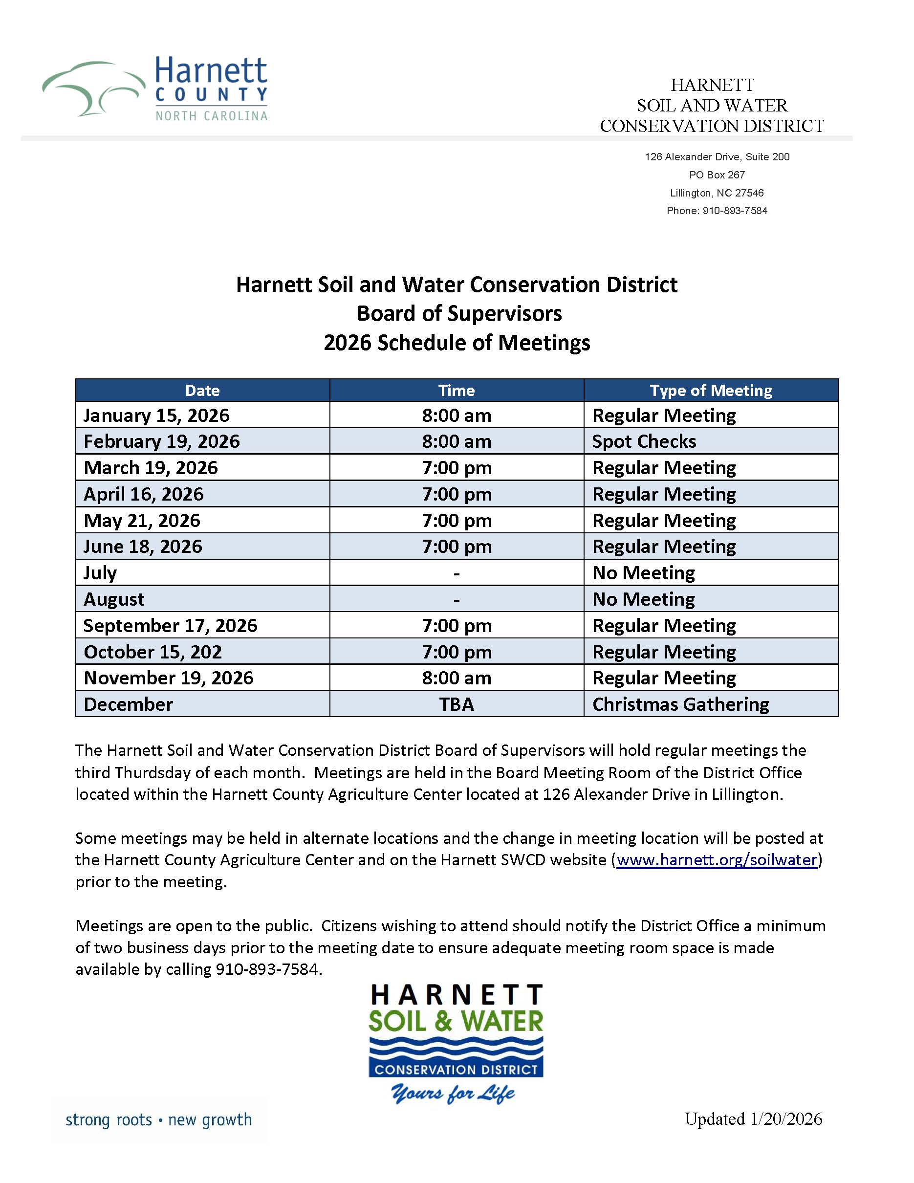 SWCD Monthly Board Schedule